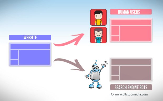 Afficher sur une même page, un contenu adressé aux moteurs de recherche et un autre à destination des internautes. En fonction de l’identification robot ou humain (user agent), on affiche le contenu choisi.